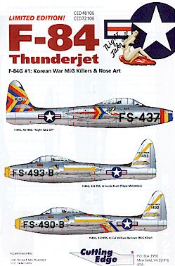 Meteor Productions now carry a wider range of "in-house" product lines. In addition to Cutting Edge Modelworks and Decals, Meteor now also produces Tekniks and Yellowhammer. The newly acquired brands continue to expand under Meteor. In fact, a number of recent releases have been complimentary between labels. A good example of this clever strategy is a batch of releases for the superb new 1/48 scale Tamiya F-84G Thunderjet.