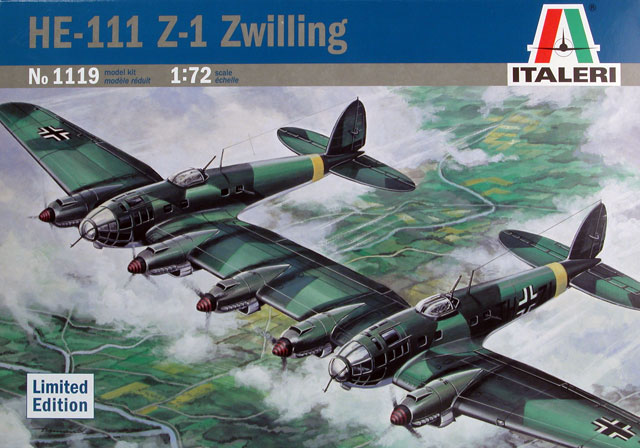 Italeri's 1/72 scale Heinkel He 111Z-1 will be available online from Squadron.com